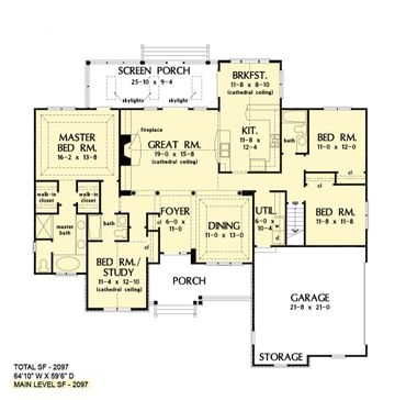 Graceful arches contrast with high gables for a stunning exterior on this Craftsman house plan. Windows with decorative transoms and several French doors flood the open floor plan with natural light. Tray ceilings in the dining room and master bedroom as well as cathedral ceilings in the bedroom/study, great room, kitchen and breakfast area create architectural interest, along with visual space in this house plan. Built-ins in the great room and additional room in the garage add convenient storage. While a optional screened porch allows for comfortable outdoor entertaining, a optional bonus room lies near two additional bedrooms and offers flexibility in this house plan. Positioned for privacy, the master suite features access to the screened porch, dual walk-in closets and a well-appointed bath, including a private privy, garden tub, double vanity and spacious shower.