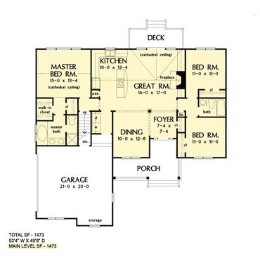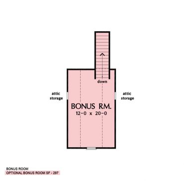 Form and function blend wonderfully together in this Arts-and-Crafts style house plan. A bold combination of exterior building materials elicits interest outside, while inside, a practical design creates space in the house plan's economical floor plan. To maximize space, the foyer, great room, dining room, and kitchen are completely open to one another. A cathedral ceiling spans the great room and kitchen, expanding the rooms vertically. The bedrooms are split for ultimate master suite privacy, and a cathedral ceiling caps the master bedroom for an added sense of space. A optional bonus room, accessed near the master suite, offers options for storage and expansion. Two family bedrooms and a hall bath are located on the opposite side of the house plan.